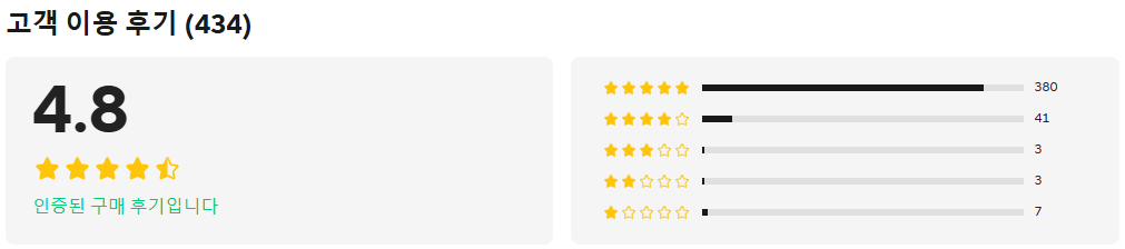 고객 후기 요약⭐⭐⭐⭐⭐ 4.8/5